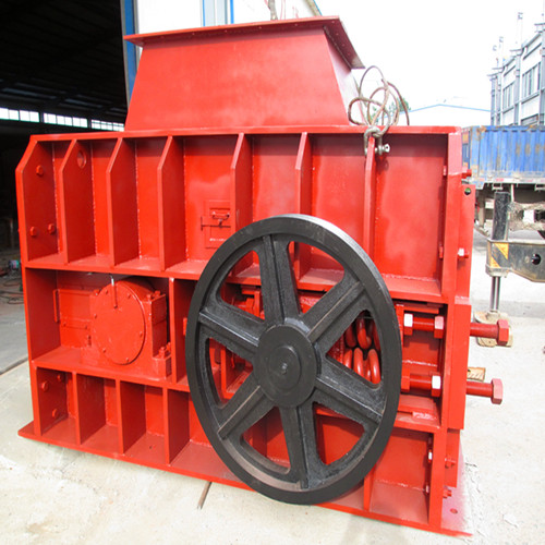 被破碎物料經(jīng)給料口落入兩輥之間依靠摩擦力的作用被帶入輥子之間,進行擠壓破碎,成品物料自下部落下。