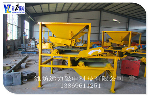 干式磁選機(jī)工作原理及參數(shù),遠(yuǎn)力磁電生產(chǎn)的干式磁選機(jī),所選擇的礦物主要是石英砂,石英砂其實(shí)是一種重要的非金屬礦物,主要是被石英石加工破碎.石英砂的一個重要應(yīng)用是作為陶瓷體和釉料原料使用,但往往含有赤鐵礦,褐鐵礦,黑云母等雜質(zhì).    1.干式磁選機(jī)的工作原理    石英砂干式高強(qiáng)磁磁選機(jī)可以去除一種鐵雜質(zhì),提高煅燒后石英砂的亮度,以及陶瓷制品的光澤度,從而提高產(chǎn)品的價值石英砂干式高強(qiáng)度磁選機(jī)使用帶式分選結(jié)構(gòu),在整個工作區(qū)從進(jìn)料到物料,由帶驅(qū)動的材料,物料可以進(jìn)行多次磁力攪拌,同時起到水沖洗的作用,去除磁性尾礦,帶有磁性將礦物輸送到選板機(jī)的退磁區(qū),使得具有磁性的礦物通過退磁裝置去除,完成修整過程,機(jī)器功率小,處理量大,磁場強(qiáng)度高,實(shí)現(xiàn)質(zhì)量好,可以獲得更大的效益.